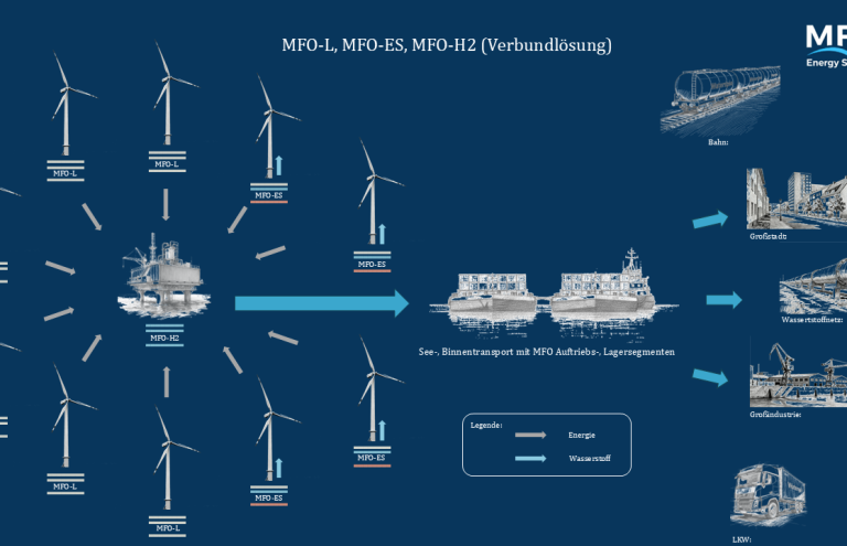 Die MFO‑H2‑Verbundlösung ist als vollständig autarkes Offshore‑System konzipiert: